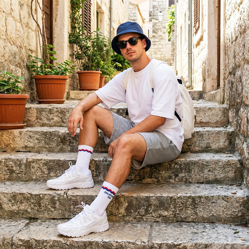 Our socks are made from a high-performance blend of cotton (77%), polyamide (18%), and elastane (5%) - ensuring breathability, comfort, and a secure fit during both athletic and casual wear.